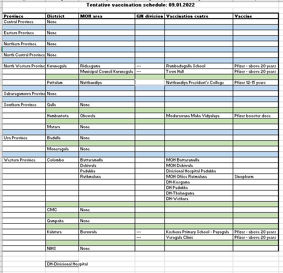 කොවිඩ් 19 වෛරසය මර්දනය කිරීම සඳහා රජය විසින් ගෙන යන එන්නත්කරණය කිරීමේ වැඩසටහනට අනුව අද (ජනවාරි 09) දිනයේ ද විවිධ ස්ථාන කිහිපයකම එම වැඩසටහන් ක්රියාත්මක වනවා.