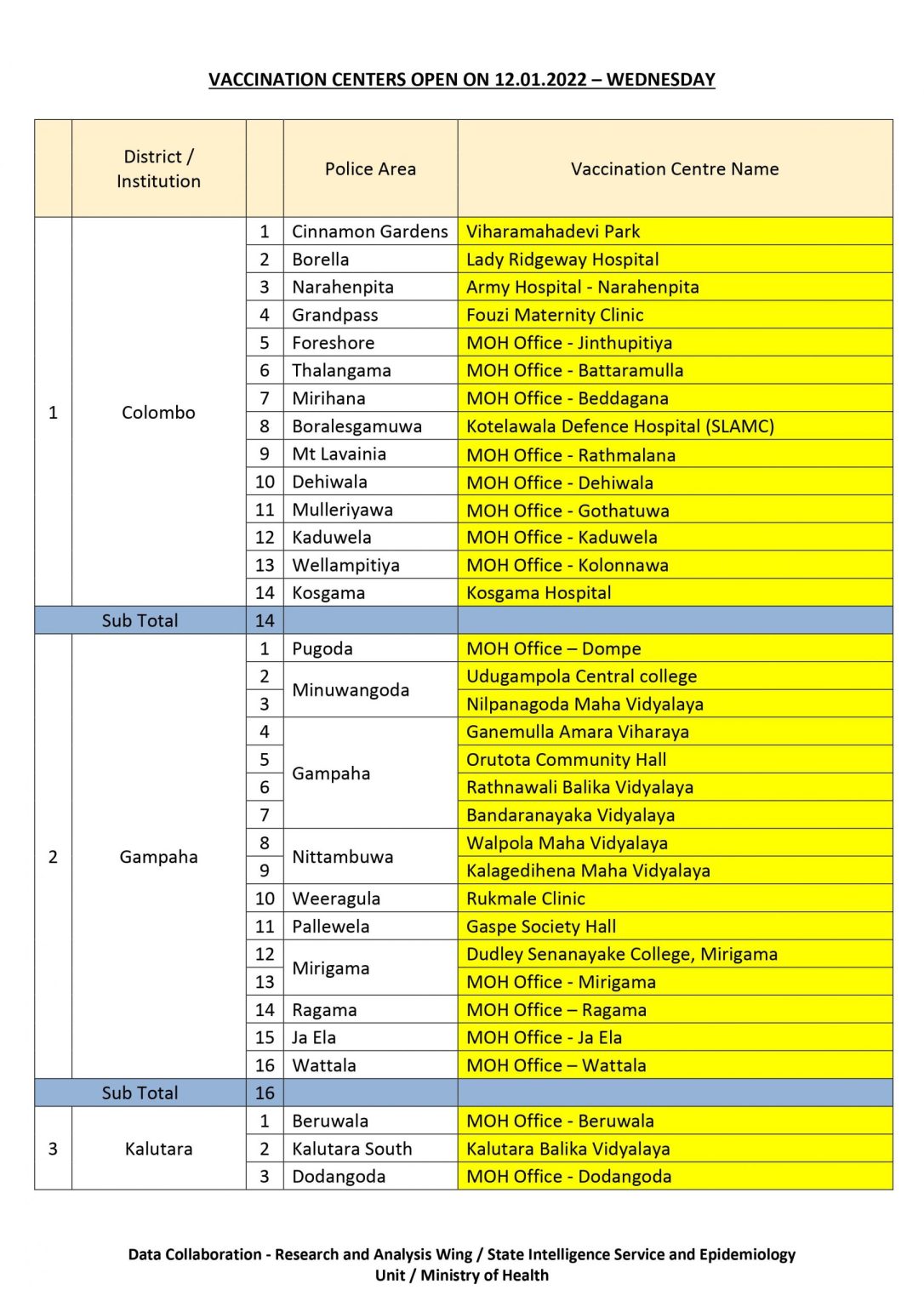 රට පුරා කොවිඩ් එන්නත ලබාගත හැකි සියලු ස්ථාන මෙතනින් දැනගන්න.(2022.01.12)