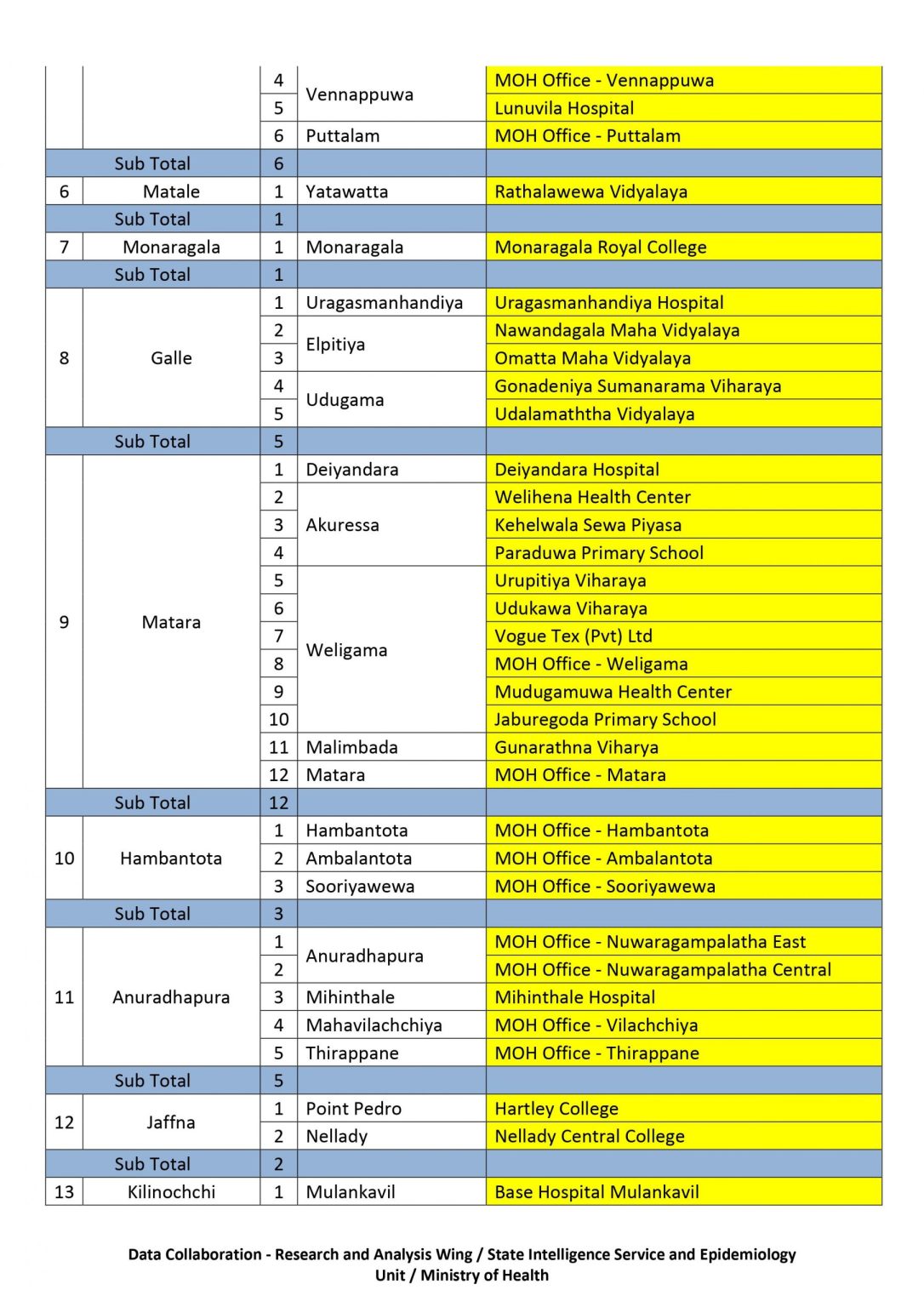 ඒ අනුව අද දිනයේ එන්නත ලබා දෙන මධ්යස්ථාන පහත පරිදි වනවා.