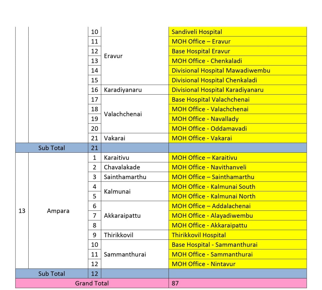සෞඛ්ය අංශ වල උපදෙස් මත එම වැඩසටහන් සිදු කෙරෙන අතර අද දිනයේ රට පුරා එන්නත් ලබා දෙන මධ්යස්ථාන පහත පරිදි වනවා.